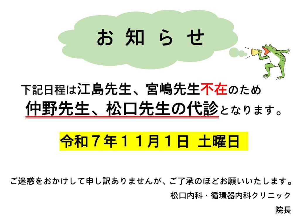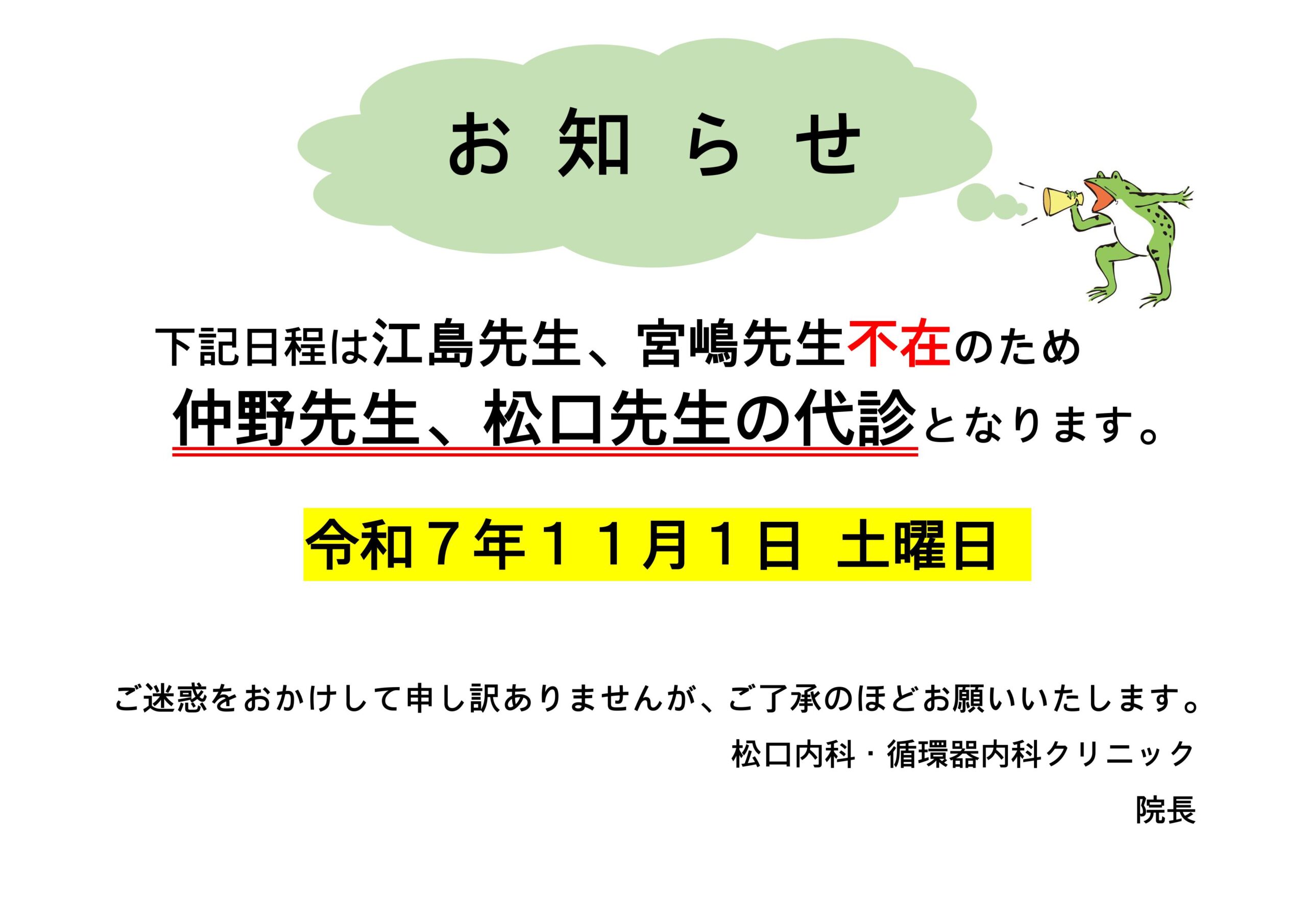 11月の医師不在のお知らせ※10/3更新※